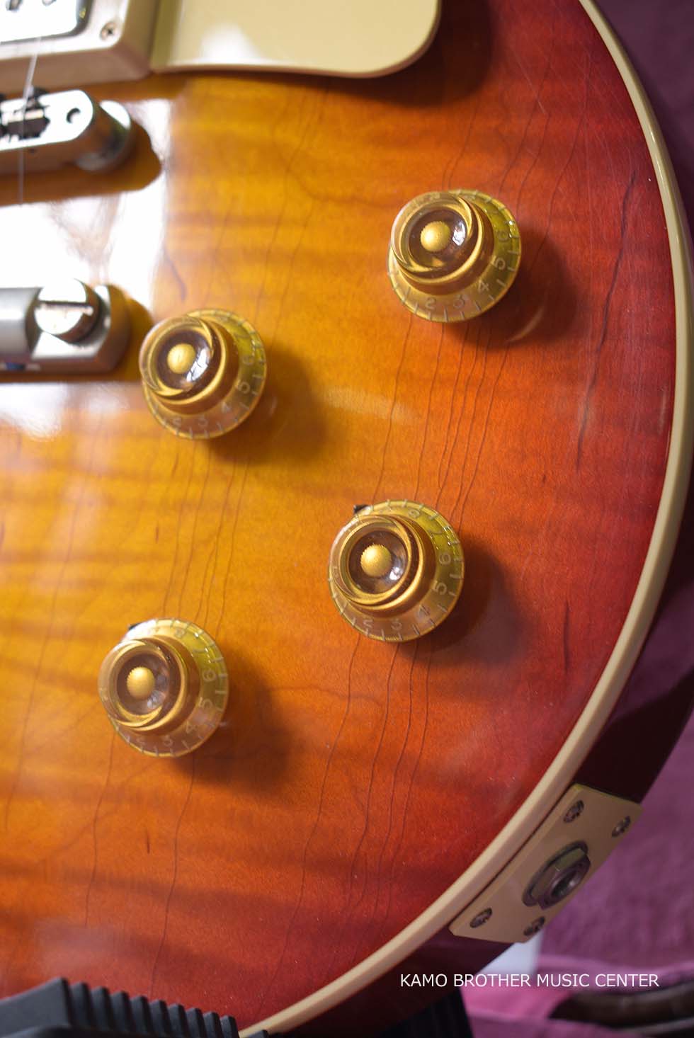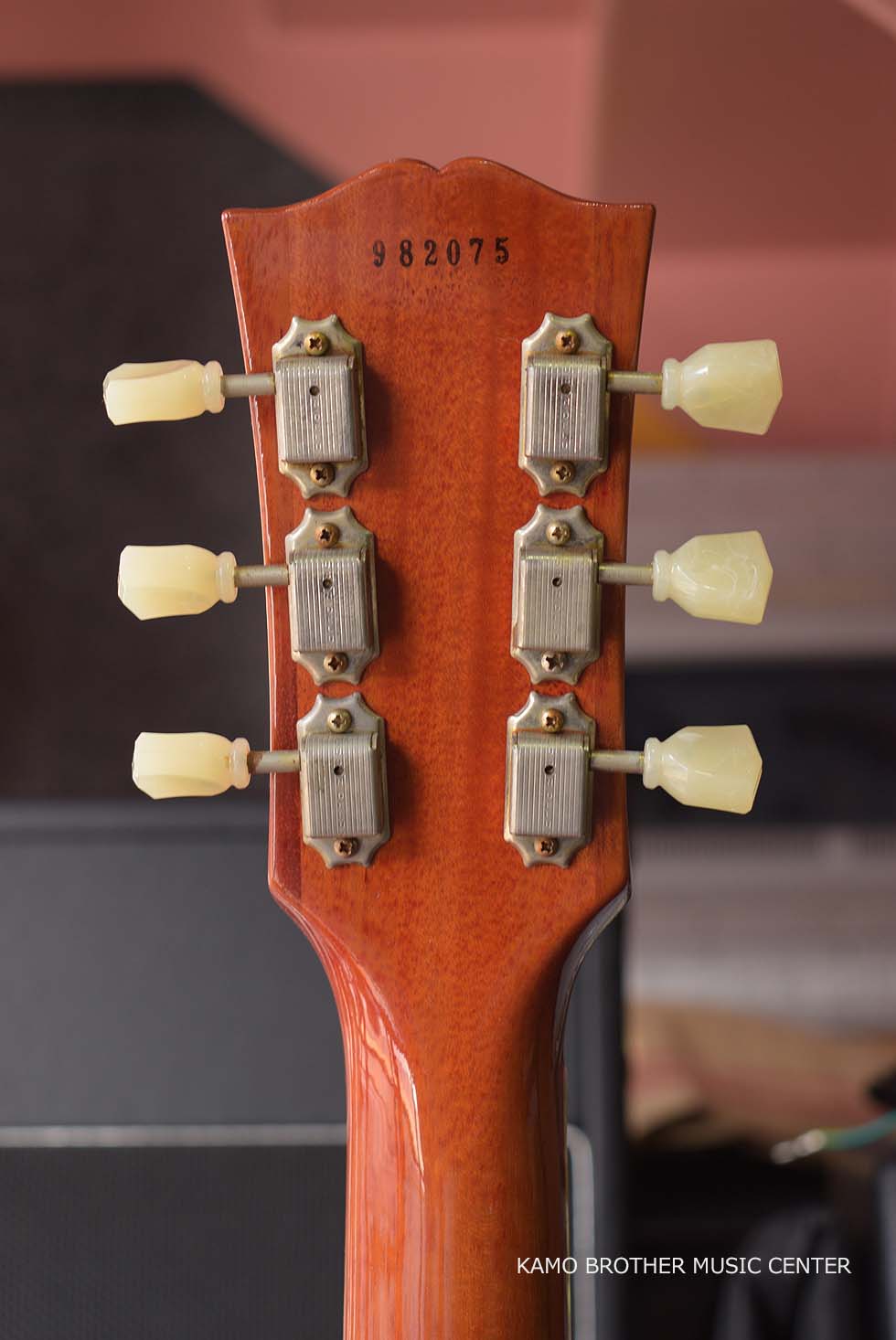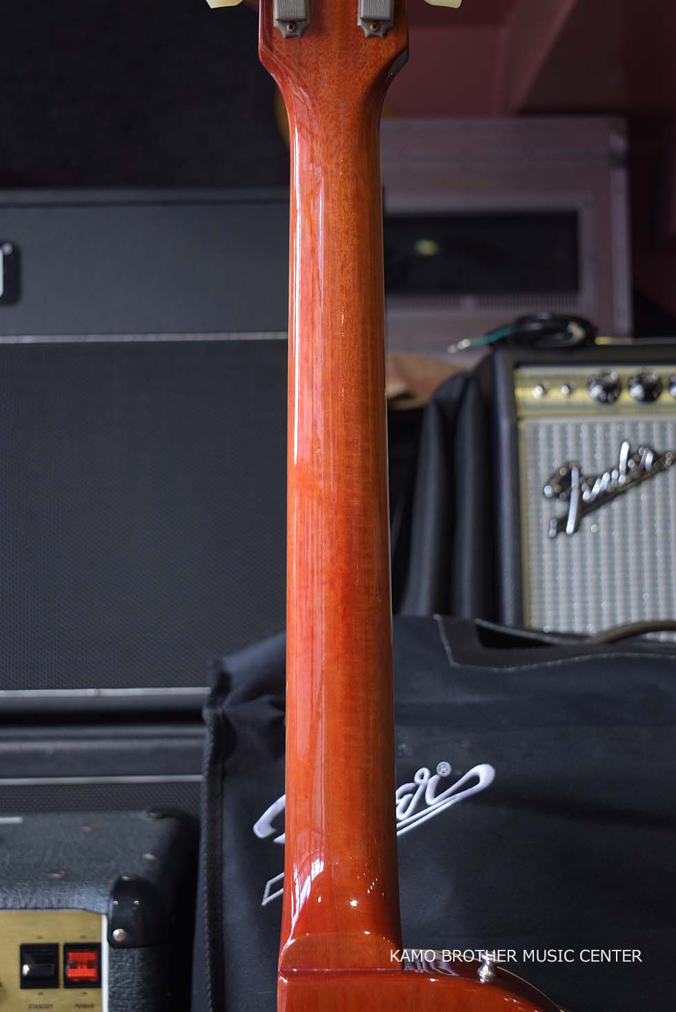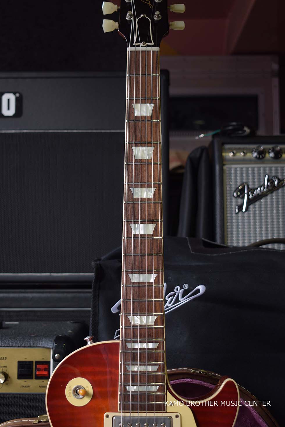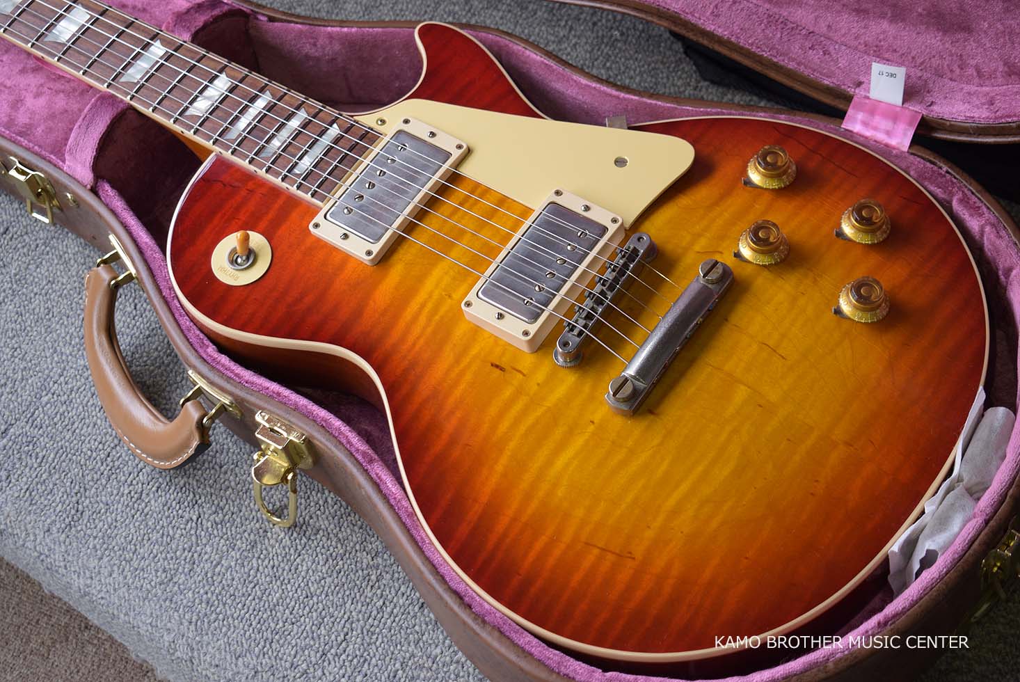 2018年製、ハンドセレクトトップの59LP VOSのUSEDです。 カラーはVintage Cherry Sunburst。 ワイルドでありながら堂々たる風格を備えたハンドセレクトならではのトップに、コントロールノブ周辺には雰囲気良く自然に入ったウェザーチェックが見られます。 細かな擦り傷や小さな打痕こそあるものの、全体的には丁寧に扱われてきた印象のきれいな状態で、フレットの消耗は10%未満にとどまり、ネックコンディションも良好です。 重量3.83㎏