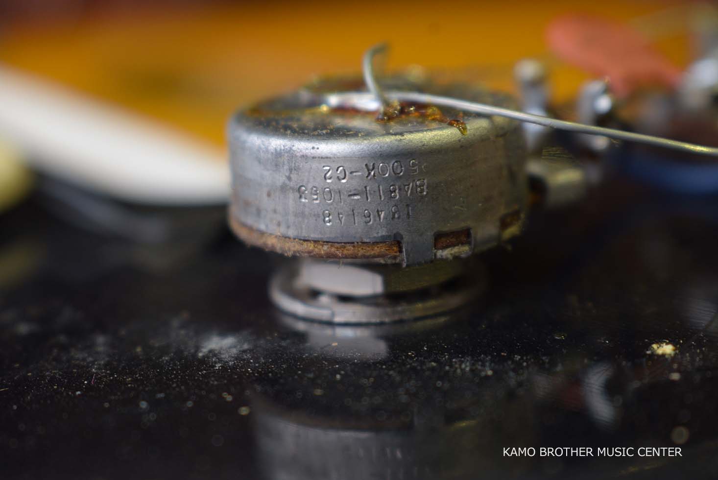 オリジナルフレットには凹凸が目立ち、近い将来交換が必要になりそうですが、現状ではまだ演奏可能な状態です。