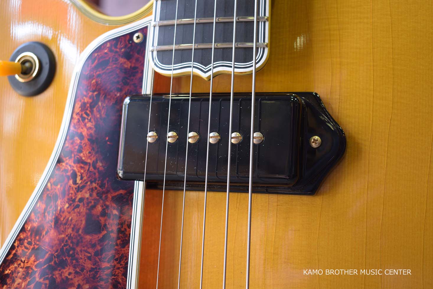 ピックアップにはゴールドのポールピースがアクセントとなっているP90が搭載され、ヘッド裏にはスティンガー加工が施されています。