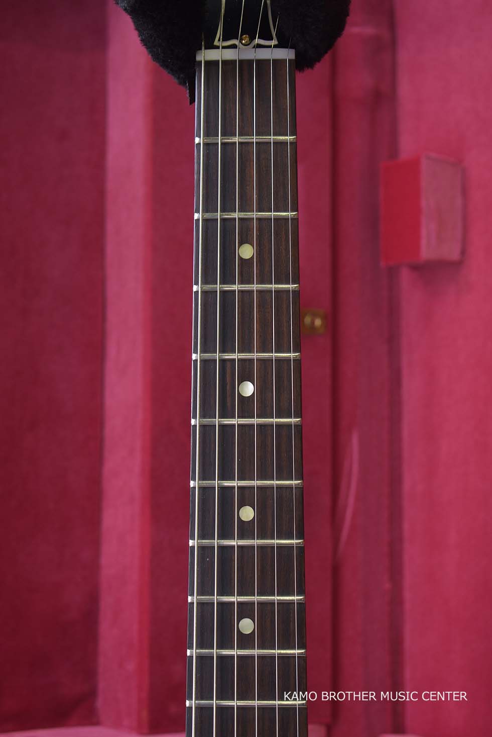ほとんど弾かれていない状態で、目立つ傷が見受けられずきれいな状態です。ゴールドパーツのヤレ感は新品時からのエイジングと思われ、使用により付いた感じはありません。コリーナ材の質感も良く、指板も濃い目で上質な材が選ばれています。