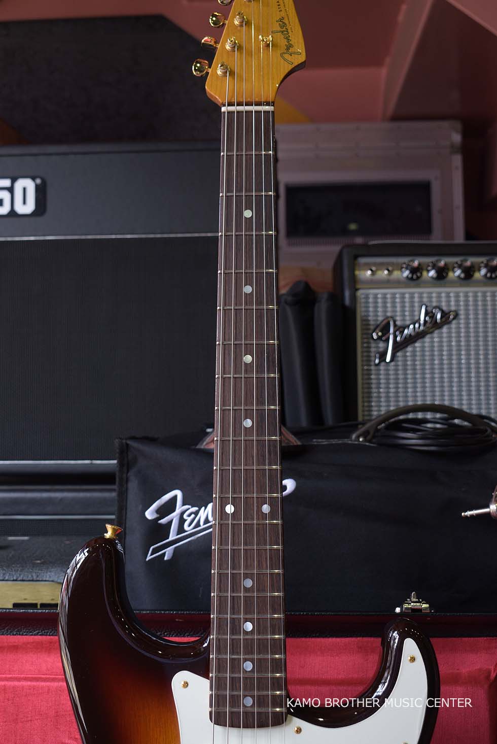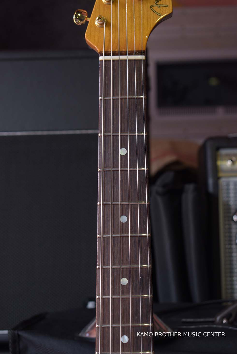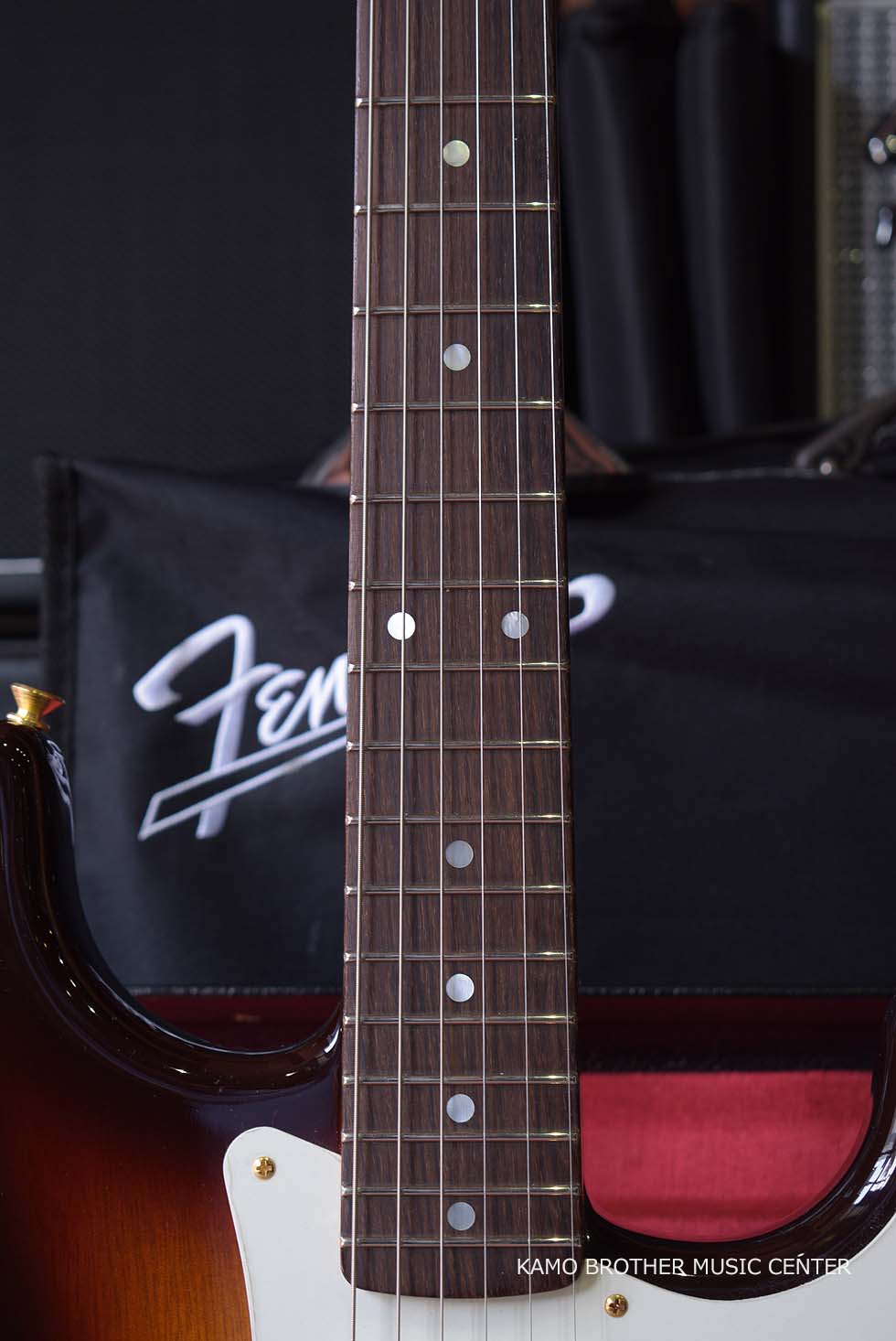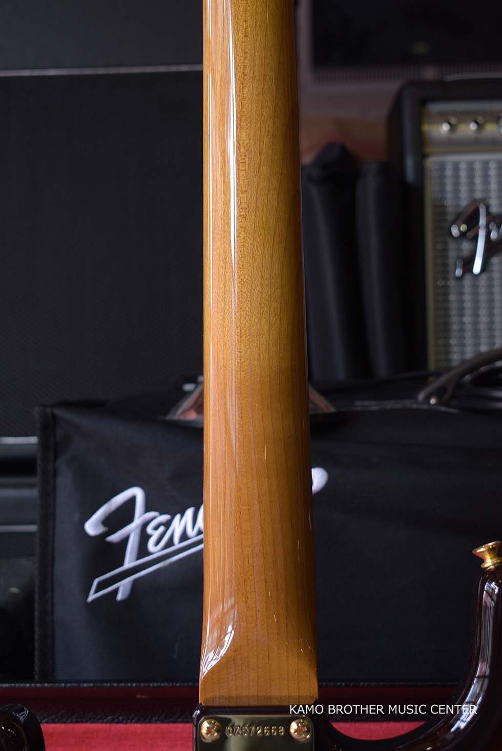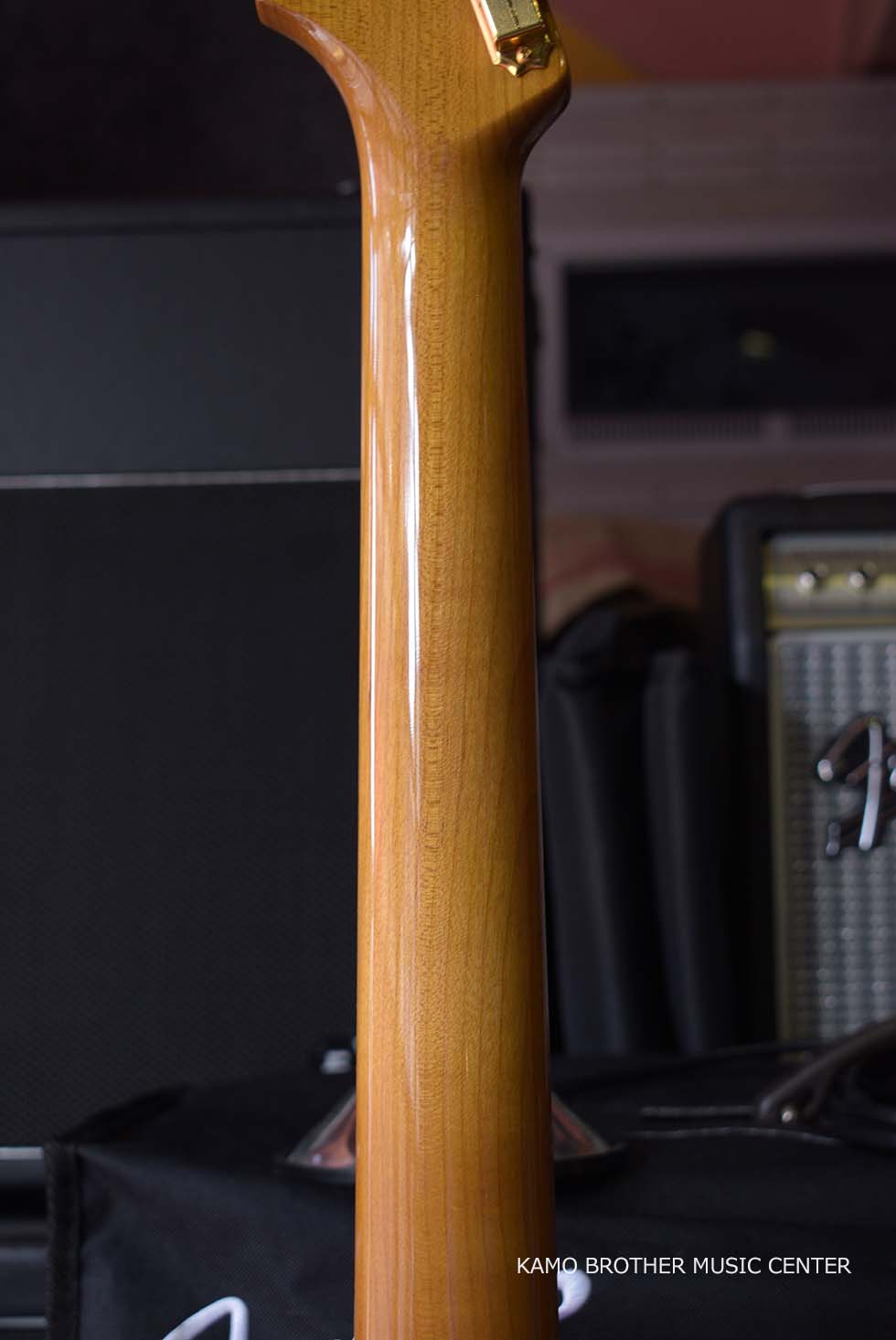 柾目取りのメイプル ネックは、60年スタイルのオーバル "C "プロファイルで、さらに美しさと安定性を高めるためにロースト加工が施され、21本のナロー トール(6105)フレットとボーンナットが採用されています。ラウンド貼りの指板は、9.5"~12"のコンパウンド ラジアスで、3Aグレードのローズウッドが使用されています。
