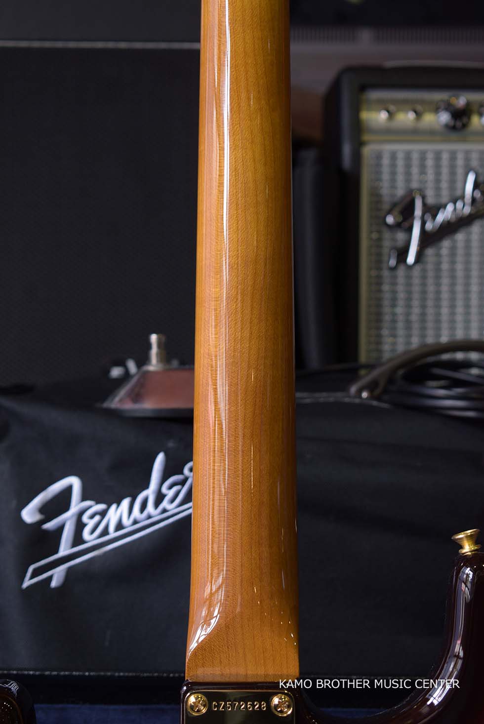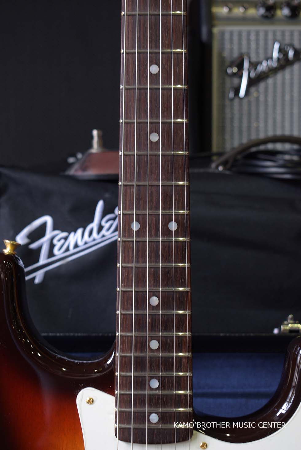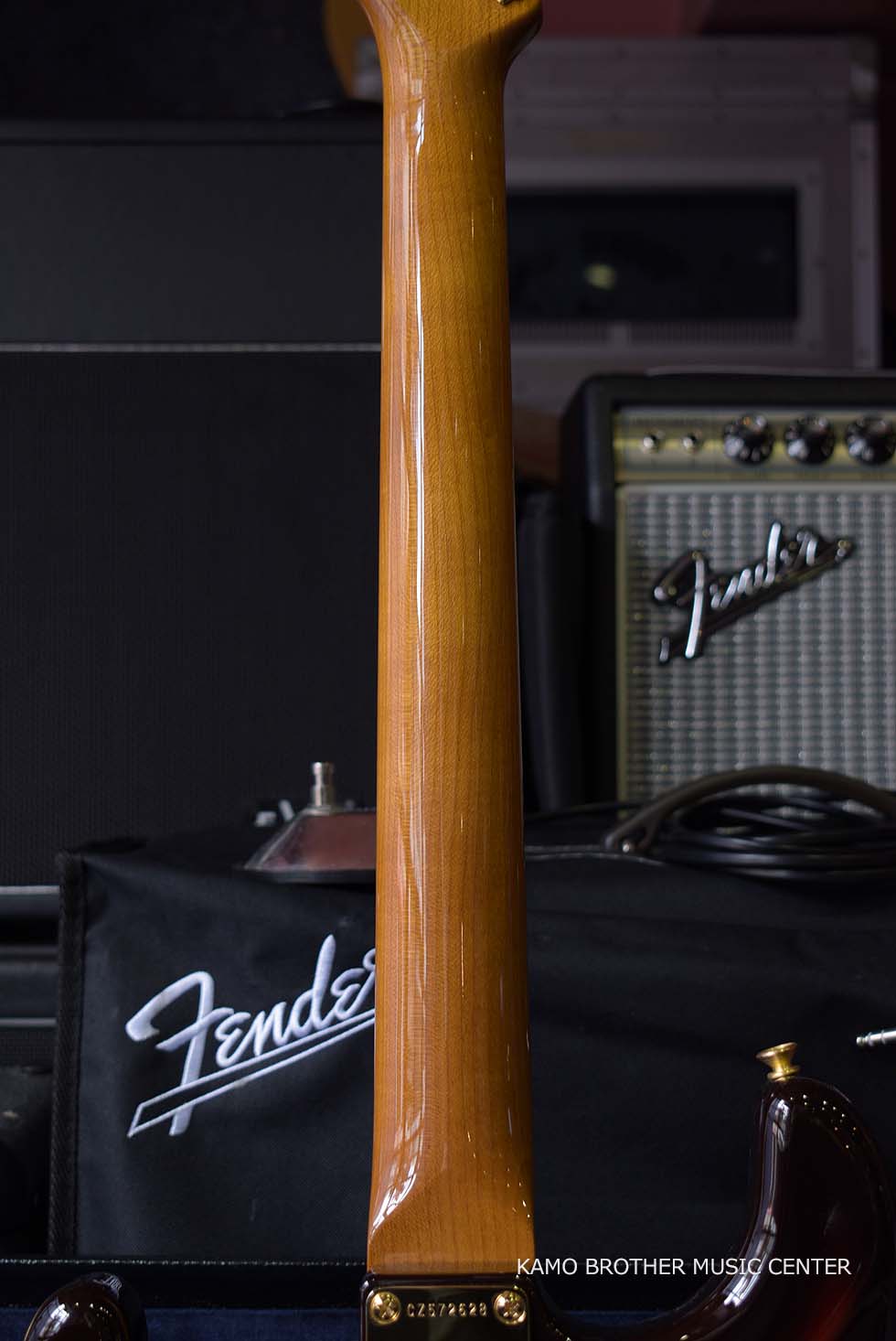 柾目取りのメイプル ネックは、60年スタイルのオーバル "C "プロファイルで、さらに美しさと安定性を高めるためにロースト加工が施され、21本のナロー トール(6105)フレットとボーンナットが採用されています。ラウンド貼りの指板は、9.5"~12"のコンパウンド ラジアスで、3Aグレードのローズウッドが使用されています。